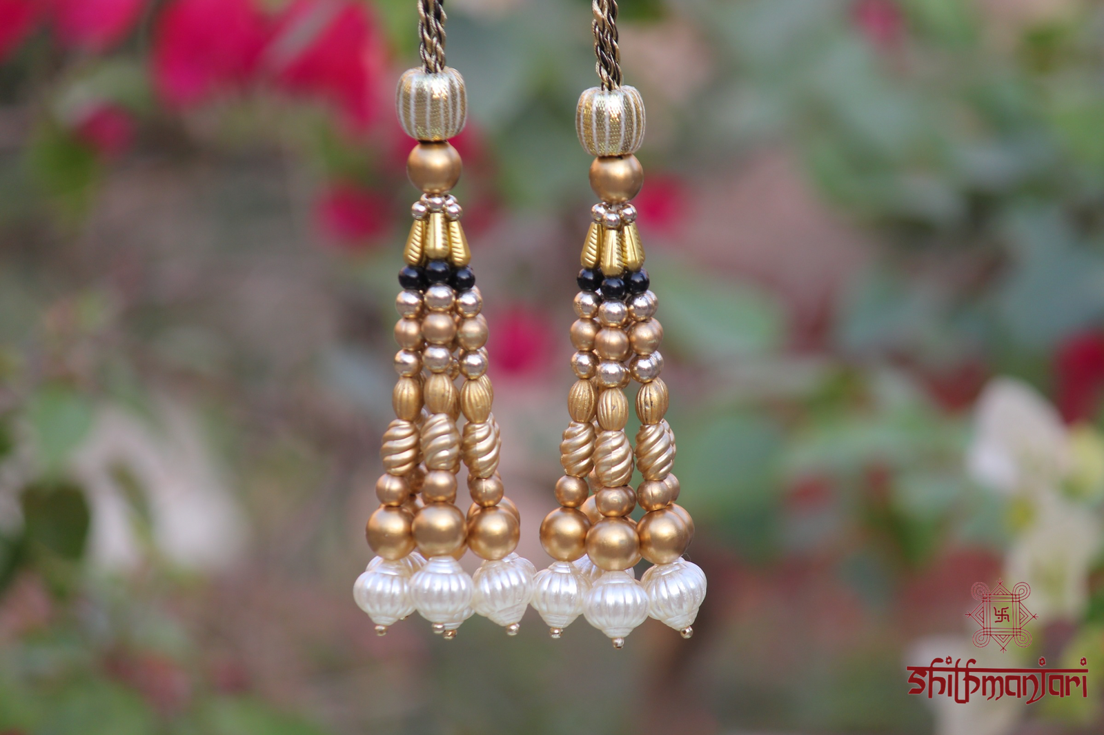 The potli is enhanced with finely crafted pearl and gold bead tassels that lend a charming, festive touch while also elevating its regal look. Its drawstring closure ensures your essentials stay secure, while offering ease of use and a classic silhouette. Lightweight yet spacious enough to carry your necessities like phone, makeup, and small accessories, it is both functional and stylish.