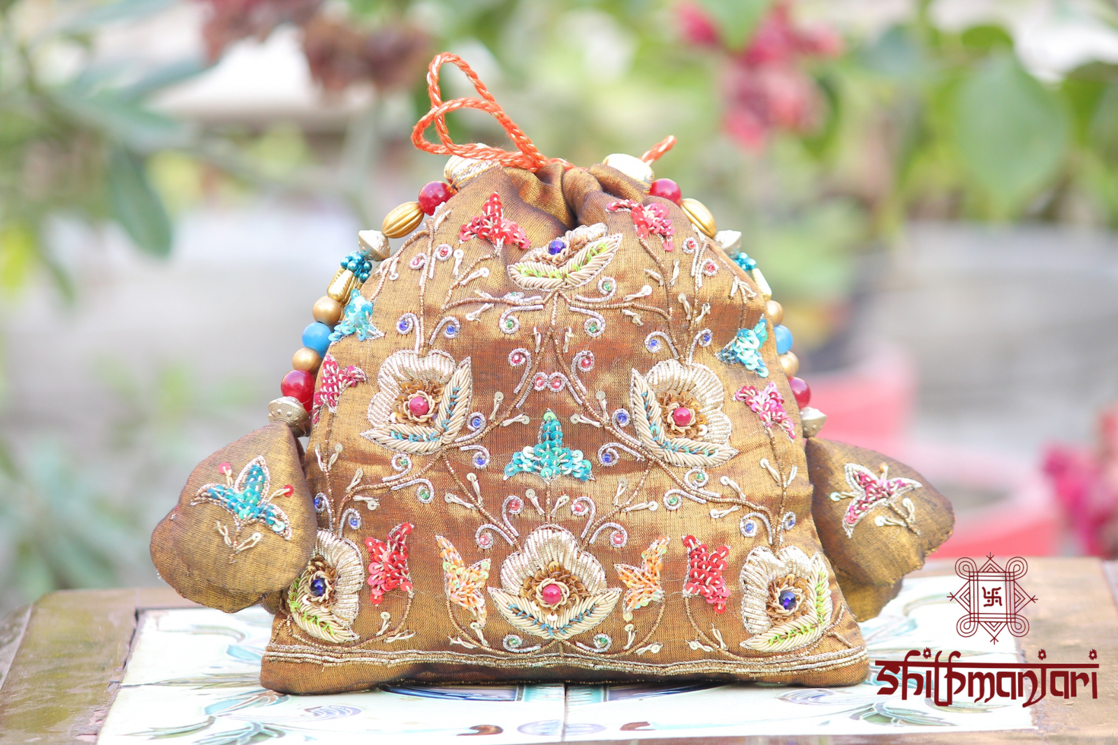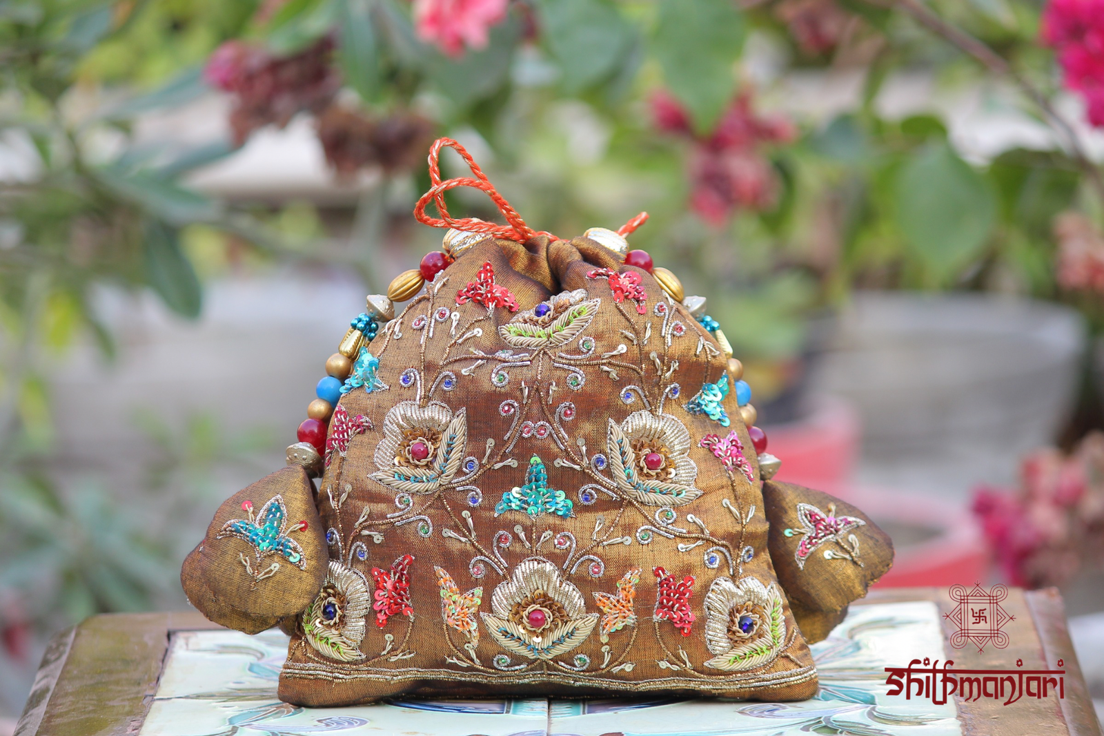 Luxury Ethnic Embroidered Potli Bag with Zari & Sequin Detailing (Traditional Ethnic Clutch)