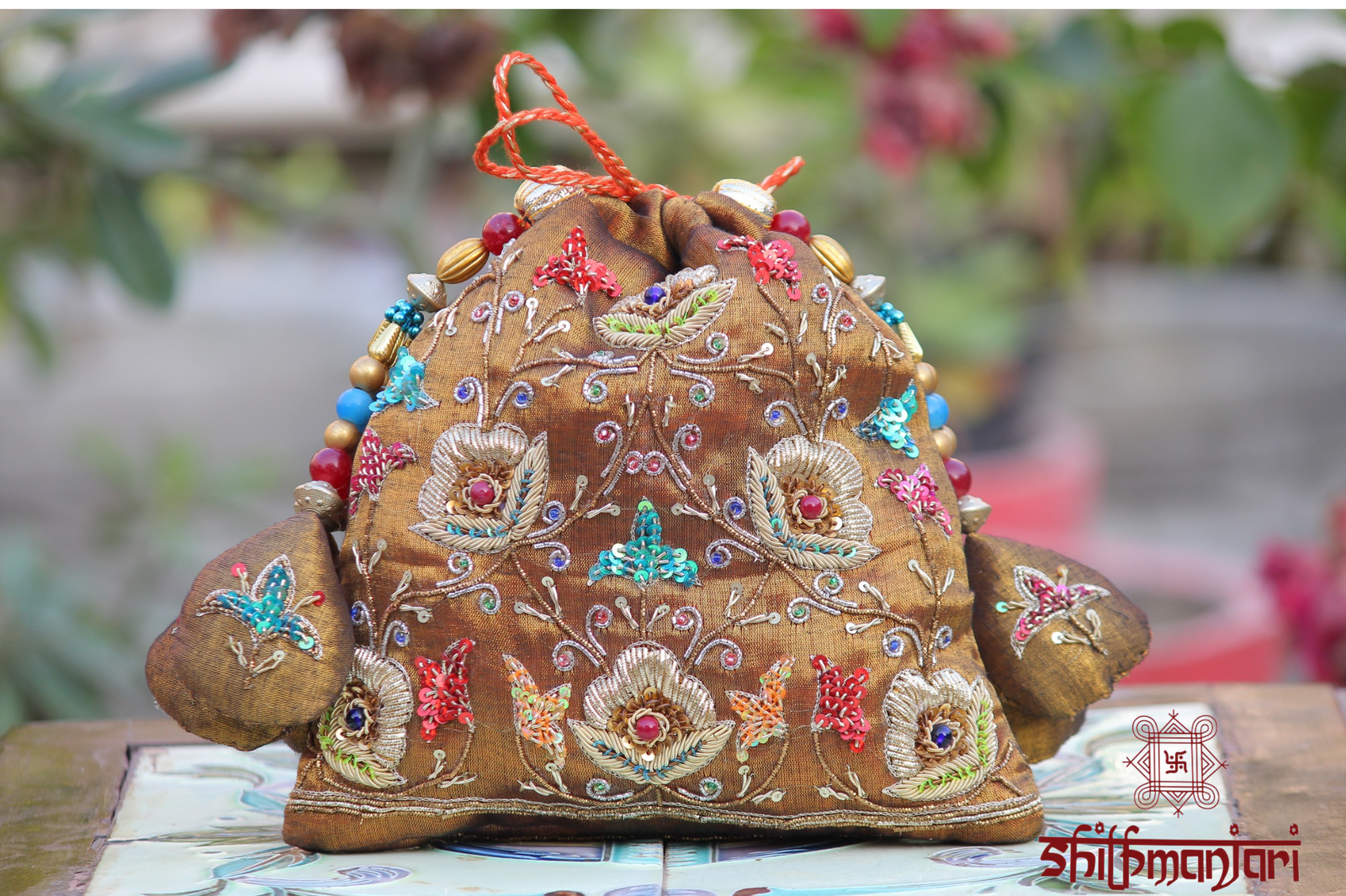 Lightweight yet durable, this ethnic clutch is not just stylish but also practical for everyday festive use. Whether you’re attending a wedding or looking to enhance your festive look, this potli bag is a must-have addition to your accessory collection.
