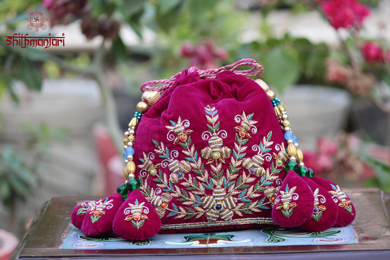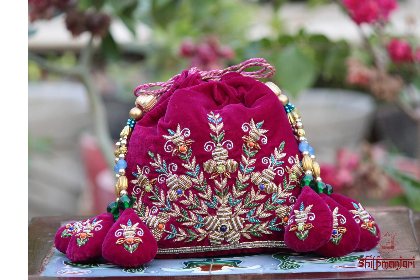 Add a touch of royal elegance to your ensemble with this Royal Wine Velvet Potli Bag, a stunning accessory crafted for those who appreciate fine detailing and traditional artistry. Made from premium-quality velvet in a deep wine hue, this potli radiates richness and sophistication, making it a perfect companion for special occasions.